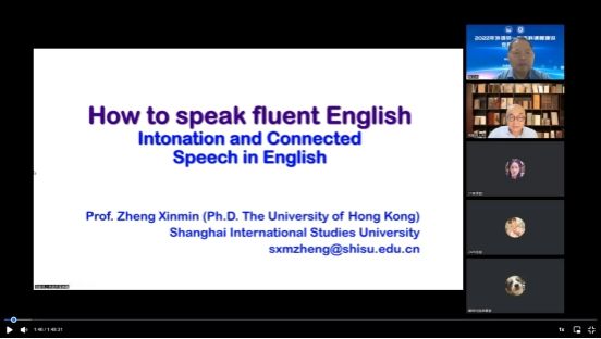 2022年11月29日晚上,郑新民教授受邀为澳门网投官网学生作题为“如何快速练就一口流利英语口语”讲座。为落实疫情防控要求,本次讲座采取线上的方式进行。讲座由澳门网投官网副院长饶卫忠老师主持。澳门网投官网英语和日语专业学生近300人线上参与本次讲座。