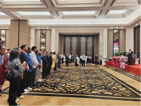 (留学生在招待会现场合影)