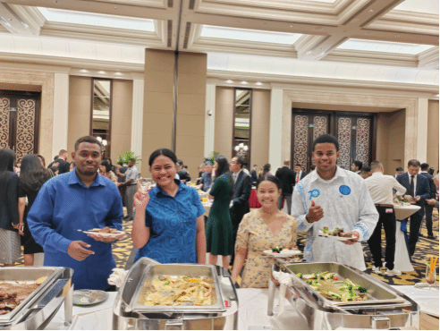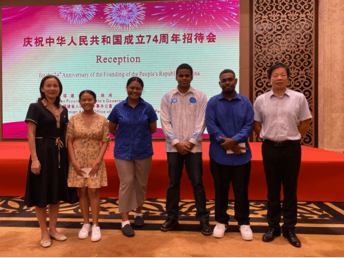 9月27日晚,福建省人民政府举办庆祝中华人民共和国成立74周年招待会。澳门网投官网对外合作处何文贤处长,澳门网投官方网站池玫院长,以及来自萨摩亚,基里巴斯,斐济和所罗门群岛的留学生代表受邀参加招待会,并与在场国际友人、港澳台同胞代表等各界人士畅谈在华、在闽生活感受,共同欢庆中华人民共和国成立74周年。