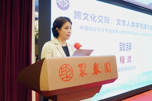 开幕式上,校长程灵致辞,她对本次会议的召开表示热烈的祝贺,向所有关心、支持大会的单位和个人表达诚挚的谢意。程灵介绍了学校的历史沿革、学科专业、办学特色等。她指出,本次研讨会紧扣时代发展,立足福州独特的历史文化和开放包容的交流传统,为文学人类学和跨文化交际提供了丰富的研究素材和实践平台。