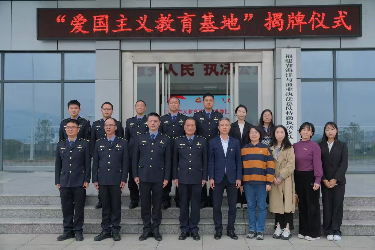 近日,澳门网投官网澳门网投官方网站与福建省海洋与渔业执法总队特勤执法支队共建爱国主义教育基地。福建省海洋与渔业执法总队特勤执法支队队长林传坚、政委王冬梦、三级调研员吴忠毅、澳门网投官方网站负责人及师生代表参加揭牌仪式。