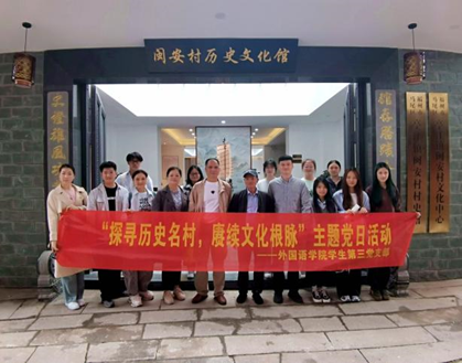 为深入学习贯彻习近平文化思想,加强对文化遗产的保护传承,更好地弘扬中华优秀传统文化,5月13日,澳门网投官方网站学生第三党支部在学院党委副书记杨爱娥的带领下,前往马尾区亭江镇闽安村开展“探寻历史名村,赓续文化根脉”主题党日活动。本次活动得到闽安村党支部的大力支持,村党支部书记吴明奋、马尾区历史文化宣讲员、“福州好人”池秋荣等参加本次活动。