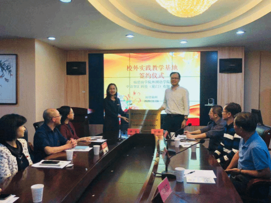 池玫院长首先向中语智汇科技(厦门)有限公司一行的来访表示热烈的欢迎,希望能加强双方的交流与合作,真正落实校企合作协同育人。叶麟总经理详细介绍了中语智汇科技(厦门)有限公司的业务范围、产品体系,重点介绍了2020年上半年疫情期间,免费为全国高校开设在线实习定制班,开放在线实习实践云平台的有关情况。