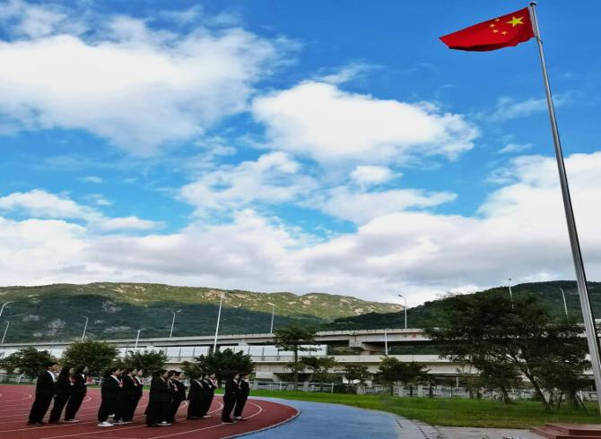 为庆祝中华人民共和国成立72周年,引导学生深入学习党史,厚植爱国主义情怀,2021年10月4日,澳门网投官方网站于马尾校区田径场举行升旗仪式,学院师生代表参与本次活动。