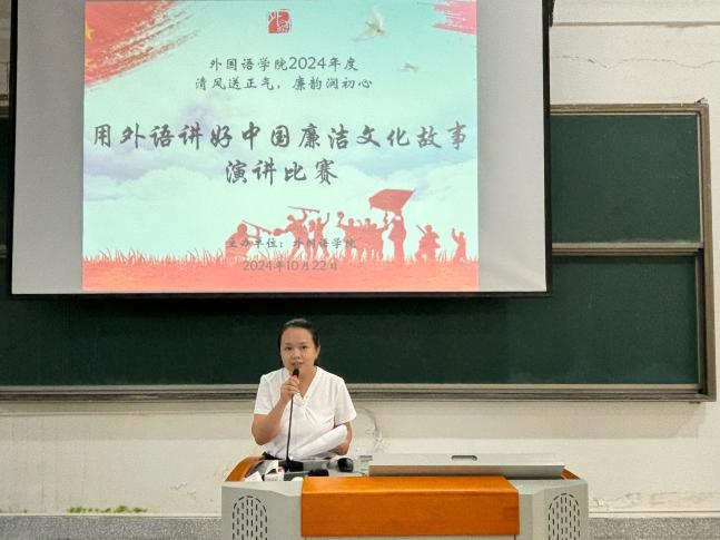 为推动廉洁教育在教育教学全过程中的融入,培养具有深厚语言功底与高尚情操的外语人才,10月22日,澳门网投官方网站于马尾校区国际厅开展“清风送正气,廉韵润初心”——“用外语讲好中国廉洁文化故事”演讲比赛。本次比赛共分为英语组、日语组两个组别,李林株老师、谢玉容老师、郭桓老师、梅诗琪老师、翁云星老师受邀担任本次比赛评委。