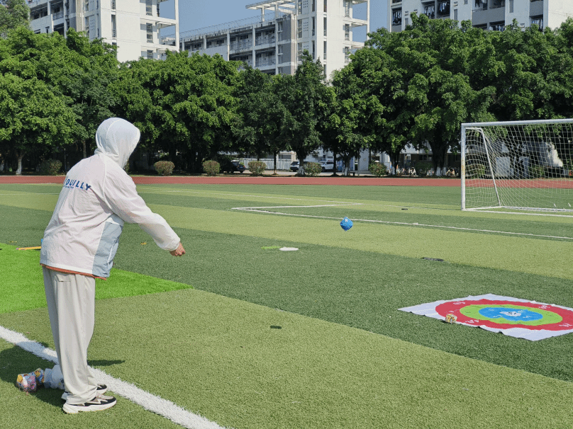 本次运动会共设足球接龙、珠行万里、合力建塔、沙包投掷、一圈到底五个项目,每个项目都需要挑战团队的默契配合与齐心协力。赛场上,同学们团结一心、奋勇拼搏。有的选手技巧娴熟,动作流畅,引得观众阵阵喝彩;有的选手虽偶有失误,但立刻调整状态,重振旗鼓,展现出了坚韧不拔的精神。在合力建塔项目中,所有队员一起拉紧绳头,用钩子小心翼翼地吊起盒子,朝着指定位置移动。在搭建“塔”的过程中,“塔”常常因受力不均而倒塌,但队员们不慌不忙,没有丝毫抱怨和气馁,而是迅速调整策略,再次尝试,充分体现了团队的凝聚力。大家紧密配合,相互鼓励,始终坚持“友谊第一,比赛第二的”高尚体育精神,现场气氛紧张而热烈。